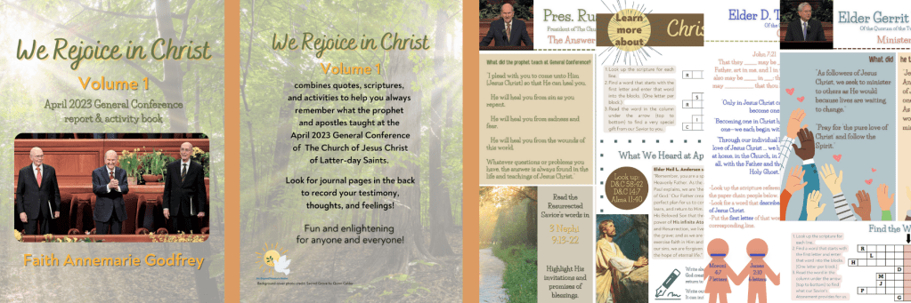 We Rejoice in Christ Vol 1 combines quotes, scriptures, and activities to help you always remember what the prophets and apostles taught at the April 2023 General Conference of The Church of Jesus Christ of Latter-day Saints.